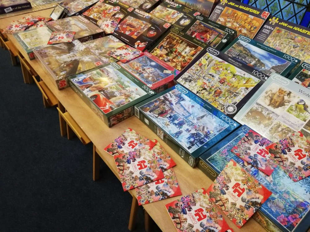 Organisers say because the puzzles are displayed in completed form, customers can see all the pieces are there; so none of the frustration of realising, after hours of work, there are pieces missing. See a puzzle you fancy, and a volunteer will unite it with its box for you.