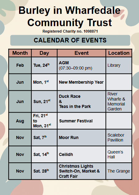Burley-in-Wharfedale Community Trust [BWCT] will mark a landmark year of growth, investment and village action at its Annual General Meeting [AGM] in February.