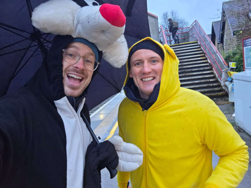 The team, dressed in their signature superhero and children’s cartoon outfits, kicked off their efforts at 6am, spreading out across every station on the Wharfedale line to meet early-morning commuters with buckets, big smiles, and plenty of enthusiasm.