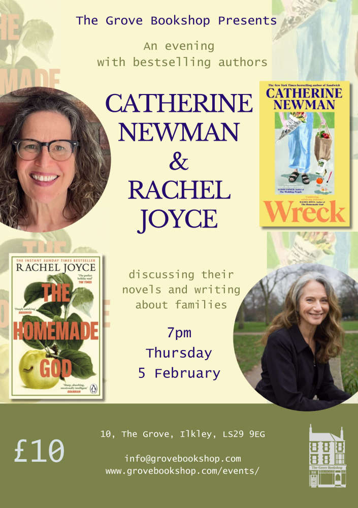 "We're really thrilled that Catherine is coming to Ilkley as part of her very brief UK tour with her new novel Wreck. It's also a delight to welcome back Rachel for the paperback launch of The Homemade God."