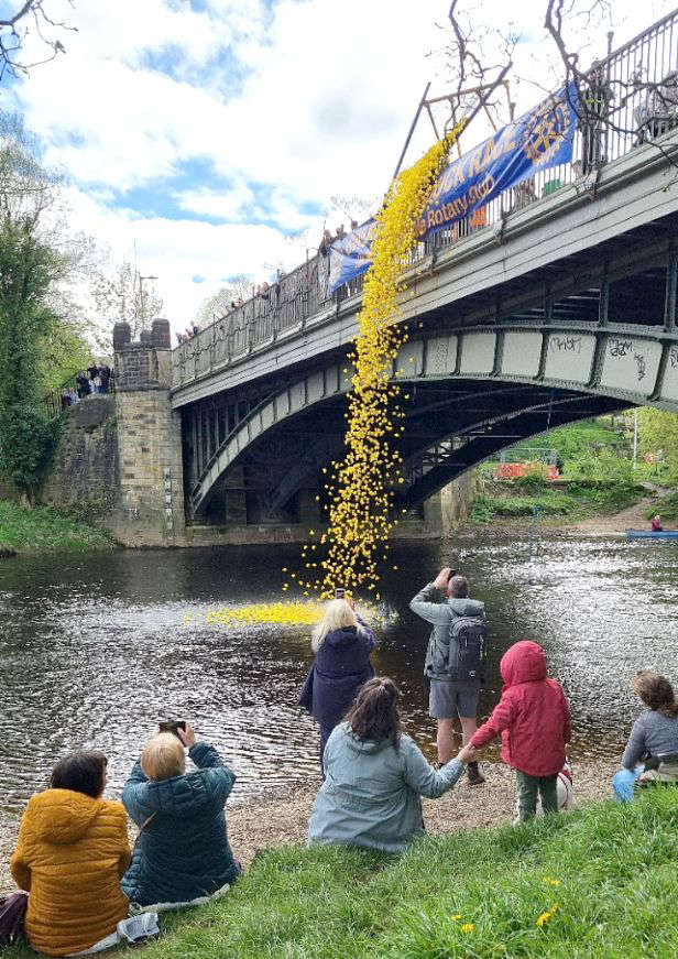Organised by the Ilkley Wharfedale Rotary Club, the Yellow Duck Race was preceded by the Red Business Duck Race – both started from the New Brook Street bridge.