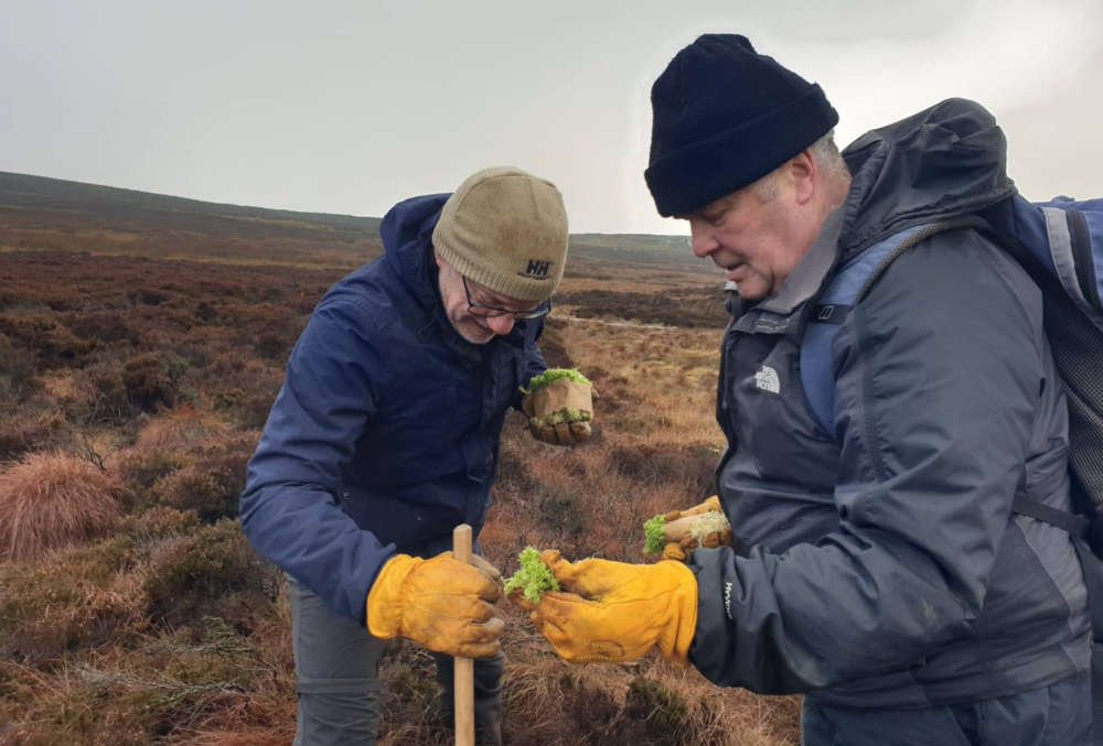 Thirty volunteers joined The Friends of Ilkley Moor, Bradford Council and Moors for the Future for a hands-on conservation day planting sphagnum moss plug plants on Ilkley Moor.